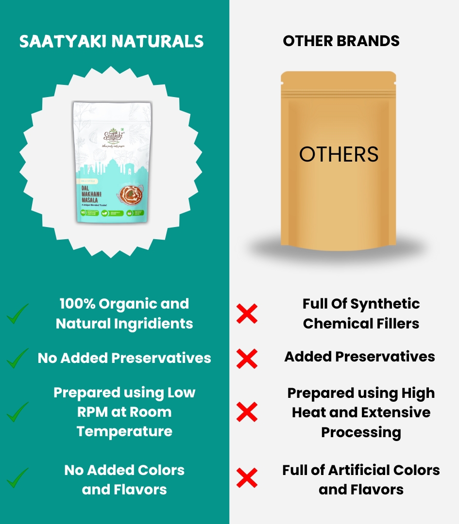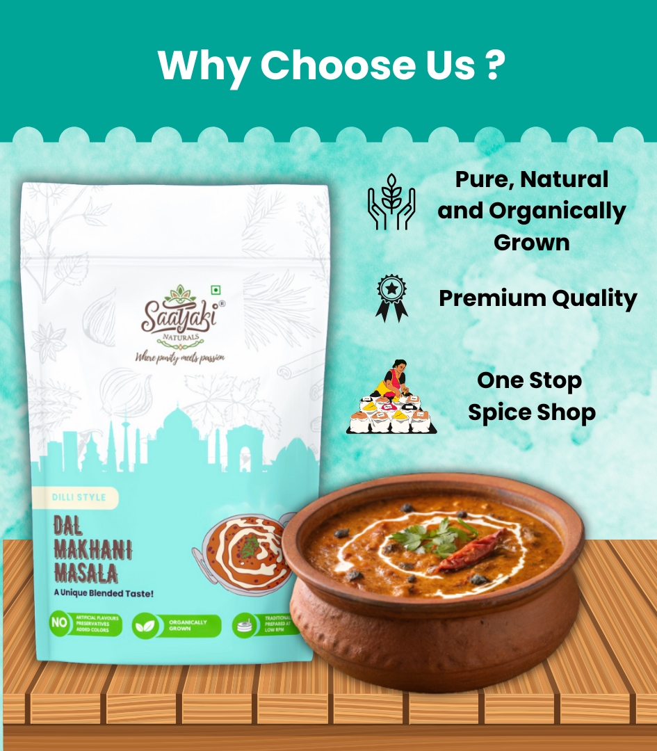 At Saatyaki Naturals, we bring you a finely crafted Dal Makhani Masala, ensuring that your dish is infused with traditional taste and irresistible aroma. Enjoy the true flavors of this North Indian classic in every bite!