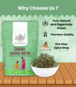 Handpicked from the finest farms, Saatyaki Naturals’ Shahi Kasuri Methi (Dried Fenugreek Leaves) is known for its intense aroma, deep flavor, and rich culinary heritage. A secret ingredient in gourmet Indian cuisine, this premium spice enhances the taste of curries, gravies, and breads with its distinctive bittersweet notes.