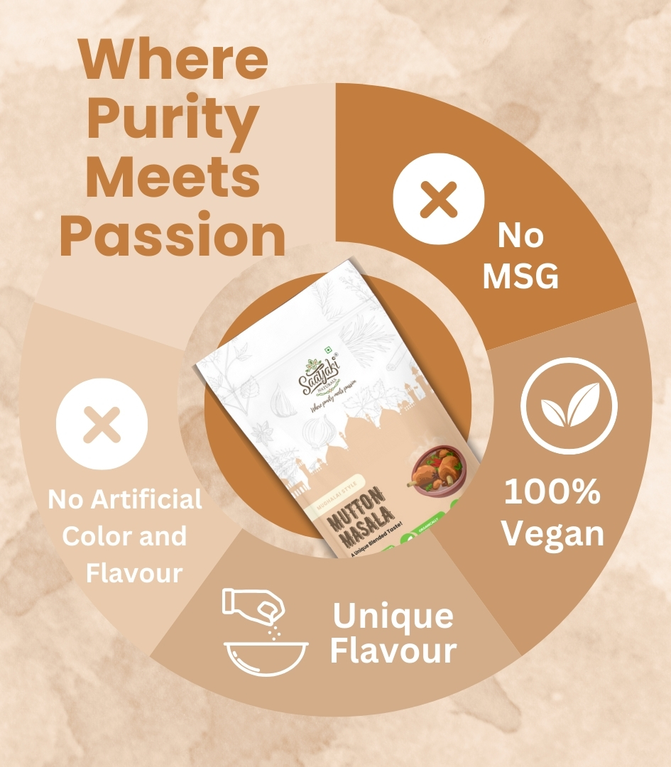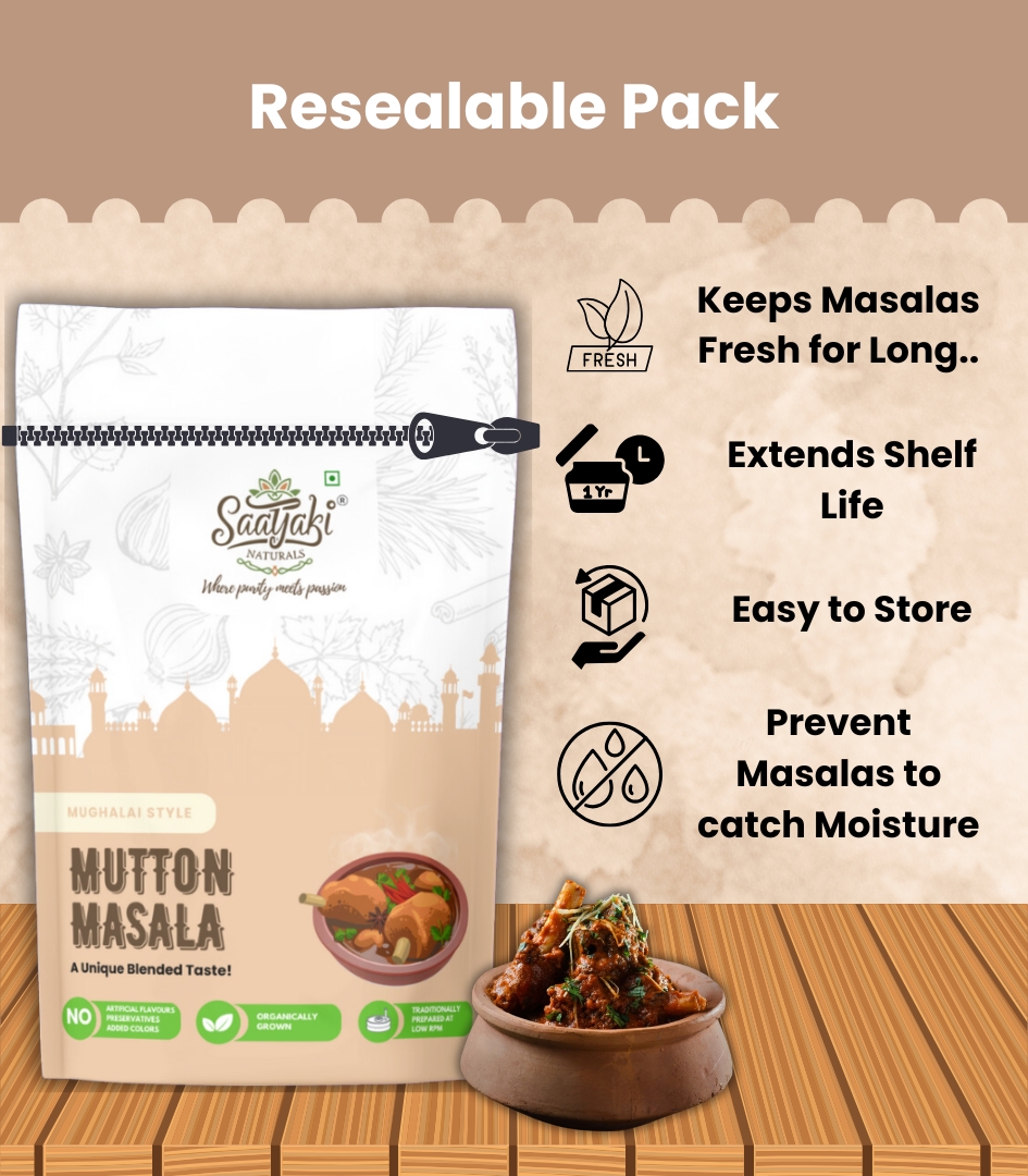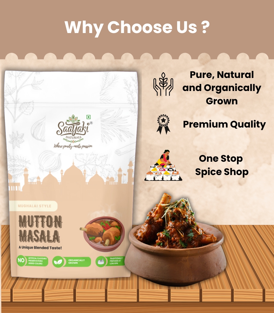 At Saatyaki Naturals, we ensure our Mughlai Mutton Masala is made using time-honored traditional techniques, preserving the royal essence of Mughlai flavors in every meal.