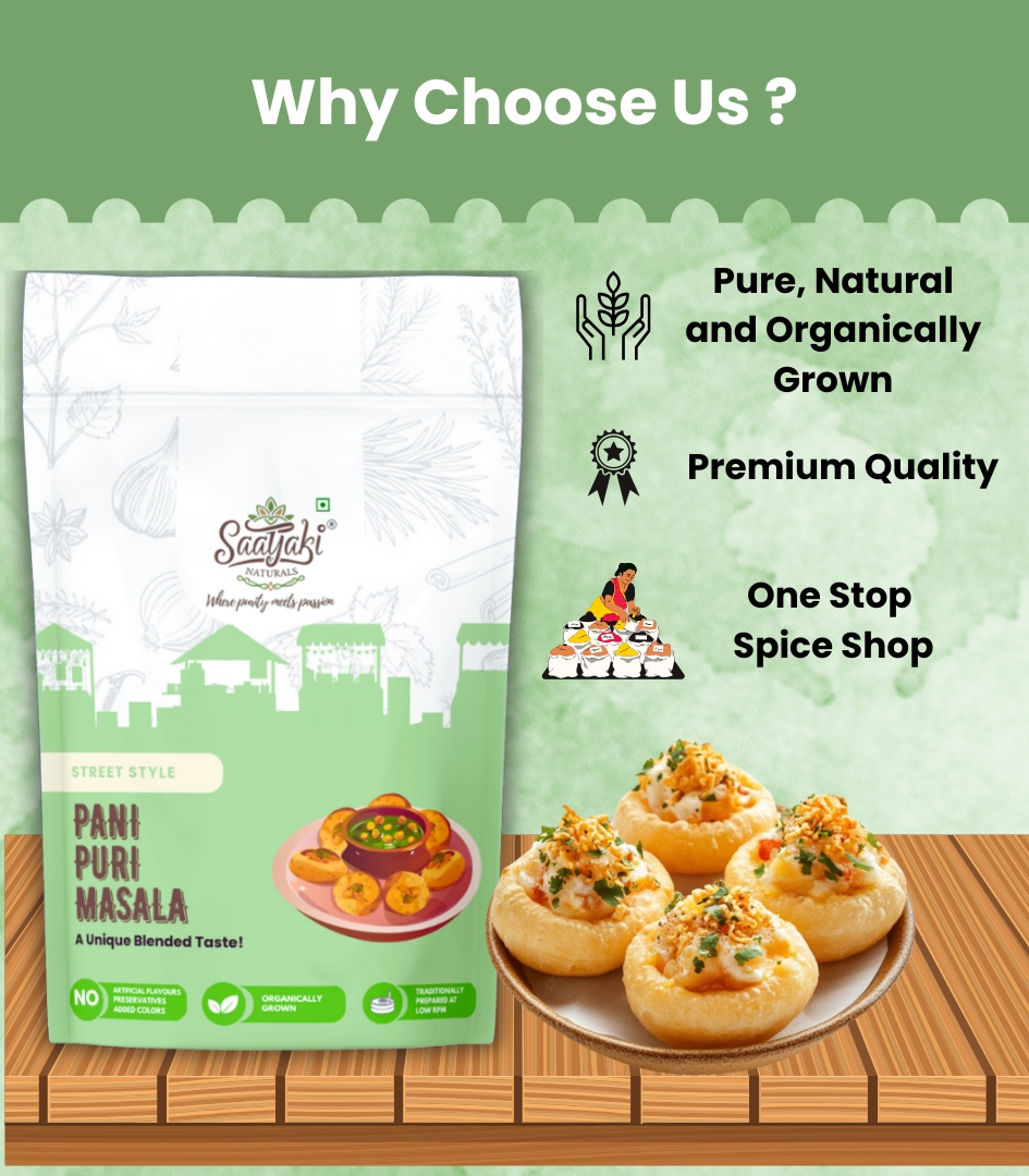 Saatyaki Naturals Pani Puri Masala – Bursting with Street-Style Flavors!