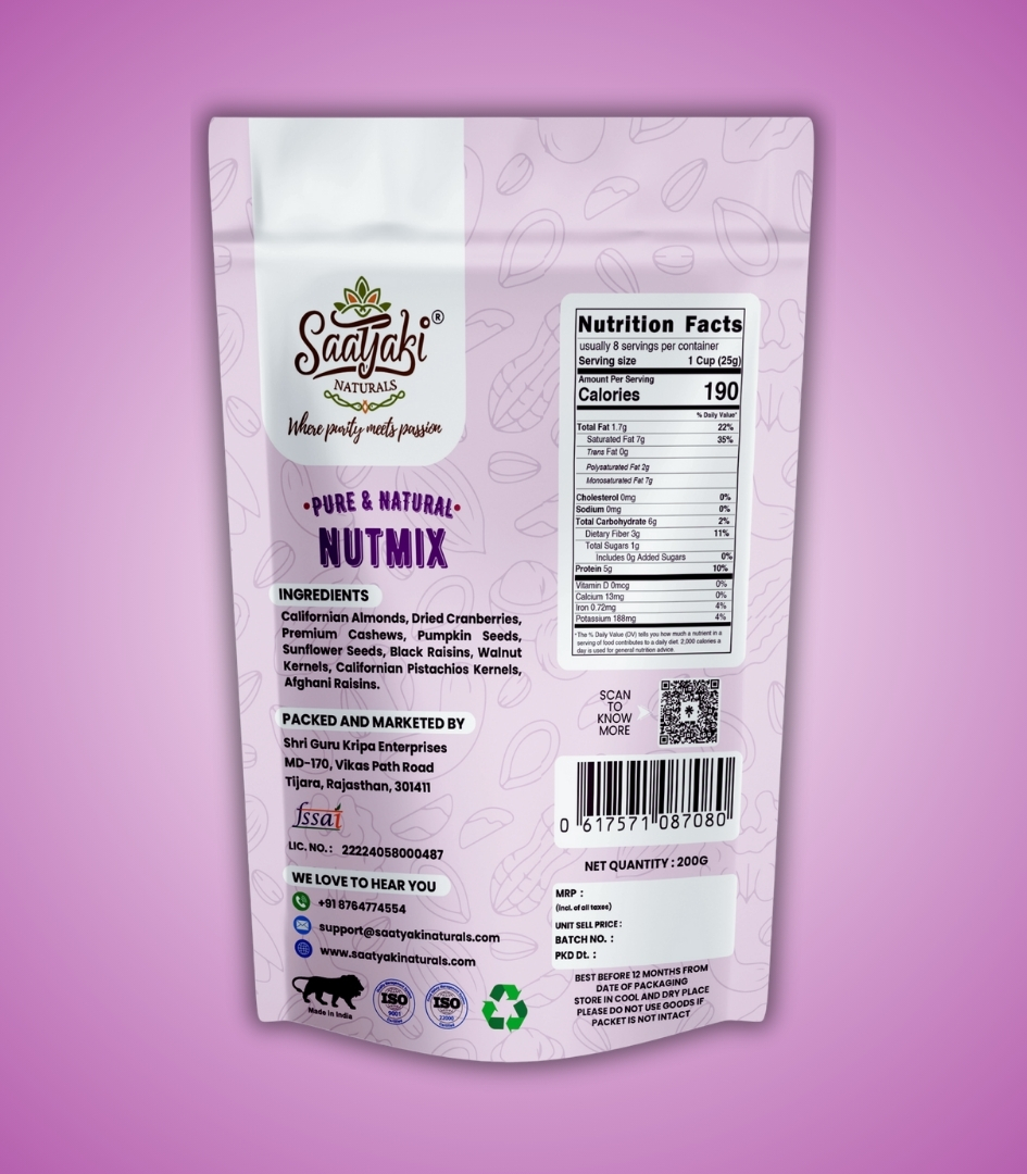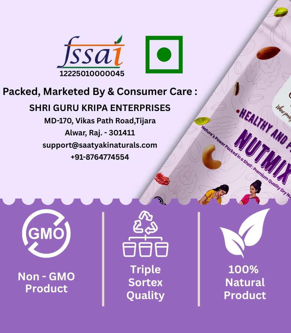 Whether you’re looking for a nutritious snack, post-workout fuel, or a premium gifting option, Saatyaki Naturals Premium Nutmix is the perfect mixture of taste and health—crafted to support your daily wellness journey, naturally.