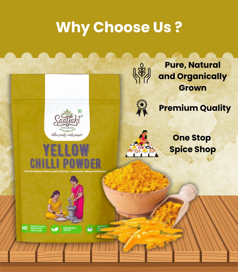 Saatyaki Naturals’ Yellow Chilli Powder – A Zesty Twist of Bold Flavor